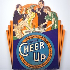Vintage 1940s Art Deco Cheer Up Soda Pop Sign Easel Back 7UP Sprite Advertising