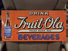 Fruit-Ola Beverages Soda Vintage Tin Advertising Sign Original 1950s