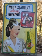 Vintage 7 Up Soda Advertising SIGN - Embossed Metal - original cooler machine
