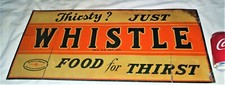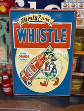 "WHISTLE SODA" EMBOSSED METAL ADVERTISING SIGN, (20"x 14") EXC COND