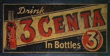 DRINK 3 CENTA IN BOTTLES 24" METAL SODA POP ADVERTISING SIGN (SOLD AS USED)