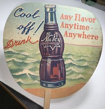 C 1940 Nu Icy Soda Pop Advertising Cardboard Fan Sign Wood Handle Original