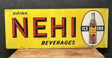 Vtg 1950s Drink NEHI Beverages Soda Pop Embossed Metal Advertising Sign 29.25”