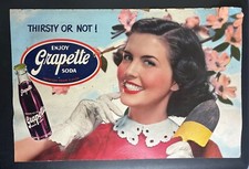 Vintage 1940s Grapette Grape Soda Advertising Litho Store Sign w/ Girl Cardboard