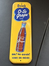 O-So Grape Soda Drink Metal Painted Advertising Sign Vintage 1950s