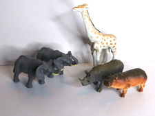 Lot of 5 Vintage Plastic Jungle Animals Elephant Giraffe Hippo Rhino from China