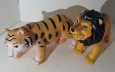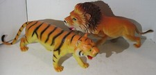 Vtg Lot of 2 Toy Hard Plastic Big Cats, Tiger and Lion marked Made in China