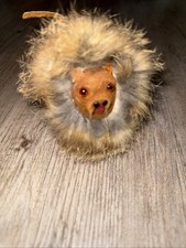 Vintage Real Fur and Leather Lion Figurine Toy Made In Poland Small Figurine