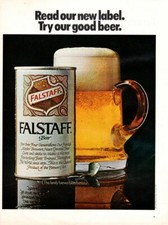Vintage advertising print Alcohol Beer Falstaff can Read our new label 1969 ad
