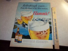 Vintage 1950's HAMM'S BEER Print Advertising Flat Top Can And Non Return Bottle