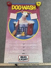 Vintage Bud Light Beer Poster 1986 Spuds MacKenzie Dog Wash Advertising Bar Pink