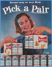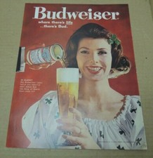 Vintage Original Print Advertising Budweiser Beer Can Pour Pretty Lady