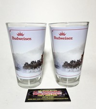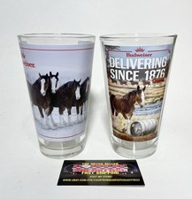 Budweiser Clydesdales Holiday 16 Oz Pint Beer Glasses Set Of Two (2) - New!