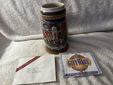 Budweiser Holiday Stein 1998 GRANT'S FARM HOLIDAY CS343 Clydesdales on courtyard
