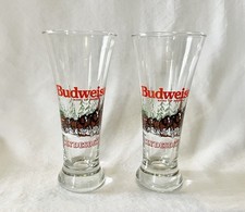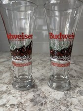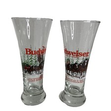 Budweiser Clydesdales Holiday 16 Oz Pint Beer Glasses Set Of Two (2) New!