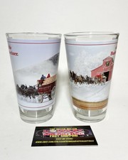 Budweiser Clydesdales Wagon Holiday 16 Oz Pint Beer Glasses Set Of Two (2) New!