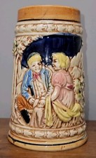 Vintage Small 4" German Beer stein Mug Couple Talking-Made in Germany