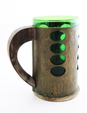 Antique Brass and Green Glass Wood Handled Tankard Primitive