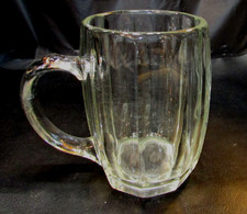 Old 1930's Eastern European Heavy Clear Glass 5" Tall 9 Panel Antique Beer Mug