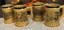 Vintage Beer Steins from Japan w/Victorian Carriage Scene Brown Ceramic Set of 4