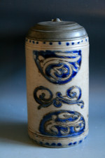 Antique 1/2 Liter STONEWARE BEER STEIN MUG Cobalt Blue Salt Glaze