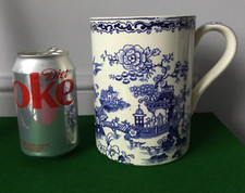 Antique 19th C - CTM Maling Pottery Large Blue & White Cider Mug / Beer Tankard