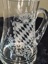 Vintage Antique Etched Blown Glass Beer Stein Mug Crown & Shield