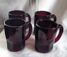 RARE ANTIQUE BEER MUGS STEINS ~ DARK RUBY RED ~ HEAVY ~ SET OF 4 ~ FREE SHIPPING