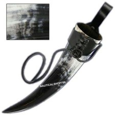 Antique Drinking Horn Medieval Handmade Viking Cup With Black Leather Holder