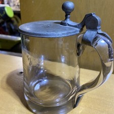 Antique Pewter Tankard Stein Beer Mug With Glass Bottom Made In Sheffield ENG