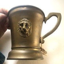 Brass Lionhead Stein Antique Solid Brass Mug Bold Sturdy Handle Italian Unique