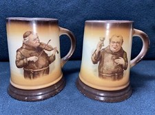 Pair of Antique Lebeau Porcelain Beer Mugs Friar Monks Eating Drinking Scene