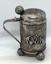 ANTIQUE JAPANESE SILVER PLATED BEER TANKARD / MUG WITH ETCHING + TOBACCO BOX