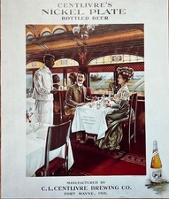 Antique Beer Advertising Poster Railroad dining car Centlivre Nickle plate vtg