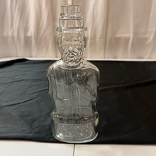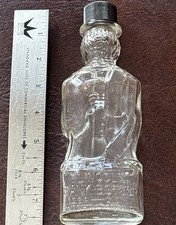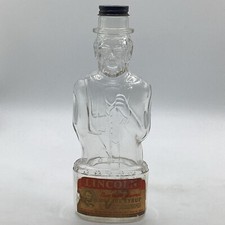 Antique Vintage Lincoln Figural Glass Bank Bottle Clear - NICE!!