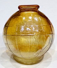 ANTIQUE Vintage WORLD BANK GLOBE Marigold CARNIVAL GLASS Penny Coin STILL BANK
