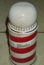 RAZOR BLADE HOLDER vintage Coin Bank Barber Shop Poll Ceramic Glass Rare Antique