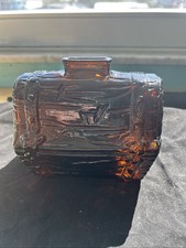 VINTAGE DEPRESSION AMBER CARNIVAL GLASS PIGGY BANK 4" LONG