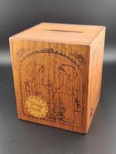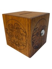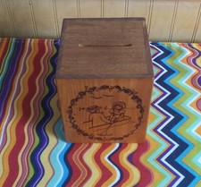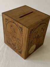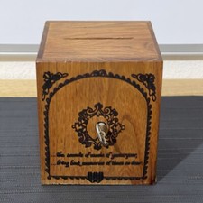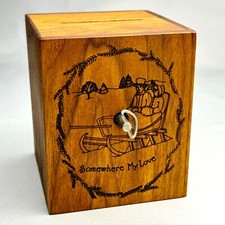 Vintage 1979 Toystalgia Wooden Coin Bank Music Box plays "Somewhere My Love"