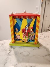 Vintage 1984 Toystalgia Wooden Coin Bank Music Box Clown Theme Working