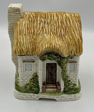 Vintage Otagiri Hand Painted Thatched Cottage Coin Bank Music Box. Plays Memory