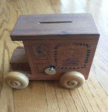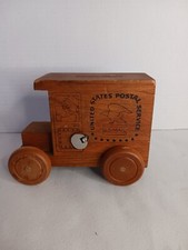 Vintage USPS Wood Music Box Mail Truck Coin Bank Toystalgia