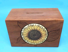 Vintage Toystalgia Wooden Music Box Coin Piggy Bank SUNFLOWER Nice Shape