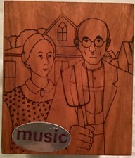 Vintage Toystalgia Wood Music Box Bank American Gothic Old McDonald had a Farm