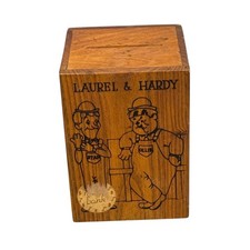 Vintage 1979 Laurel & Hardy Wooden Wind-Up Music Box Coin Bank Toystalgia Retro