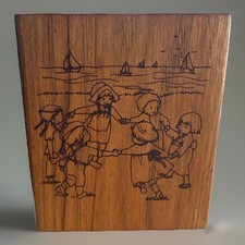 Vintage 1979 Toystalgia Wooden Bank Box Kids Art Nursery Pyrography Music Works