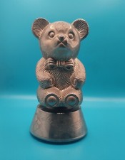Antique Silver Tone Teddy Bear Coin Piggy Bank and Wind Up Spinning Music Box