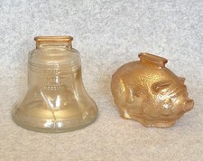 Vintage Anchor Hocking carnival glass style Liberty Bell & pig banks EX! 1970's