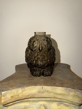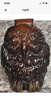 Vintage 1950's Wise Old Owl Smokey Brown Glass Piggy Bank Coin Penny Jar