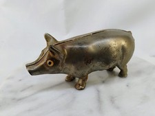 Antique Vintage Cast Metal Still Pig Piggy Bank With Glass? Eyes VERY RARE